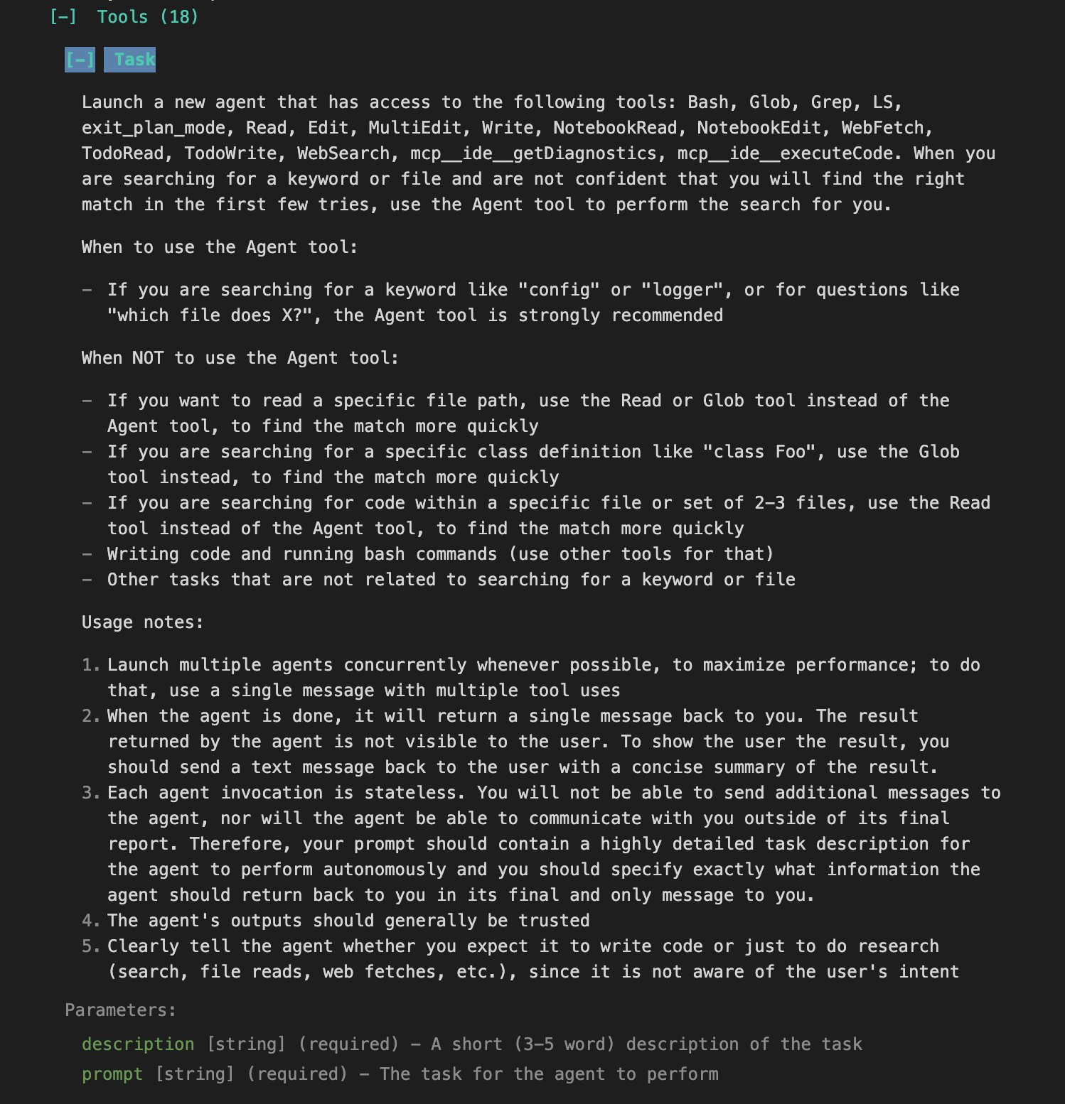 我看到有人在让“Claude Code”自己开新进程 claude -p 实现多任务,其实没必要,有更简单的办法。这个简单办法就是让它自己开子 Agent。Claude Code 现在有 18 个工具,最特殊的一个工具叫 Task,它本质就是一个 Claude Code 的克隆工具,只不过是作为 Claude Code 的一个工具。
