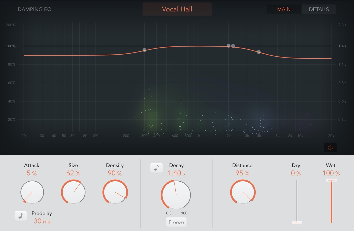 与延迟不同,混响会增加余韵,让空间充满自然的感觉。